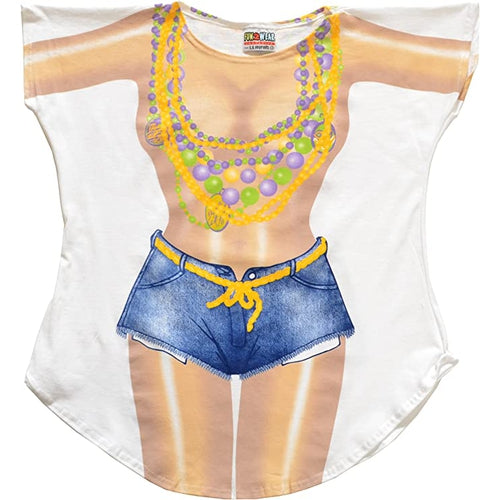 LA Imprints Fantasy Coverup Mardi Gras Girl Body Coverup T-Shirt